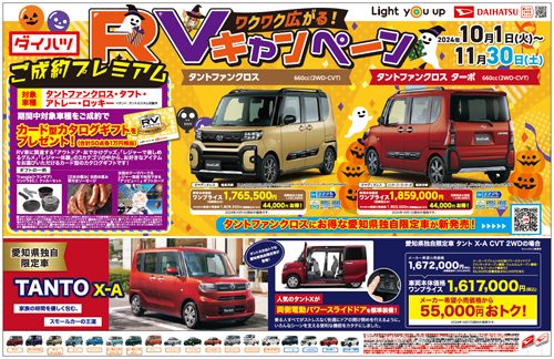 期間中にダイハツ半田南・半田北の両店舗にてご成約のお客様には、各種特典をご用意しております。